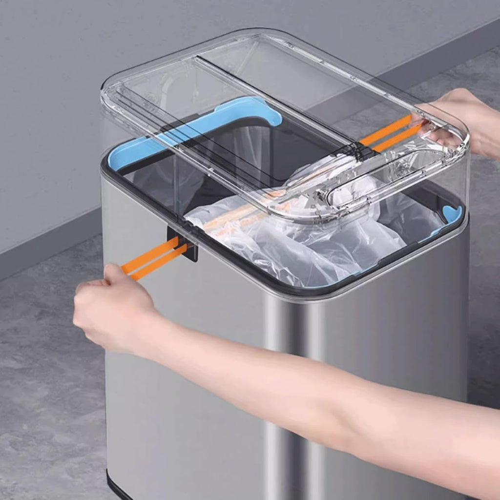 - Lixeira com sensor inteligente, acenando com a mão para abrir a tampa, modo de abertura bidirecional, detecção rápida de 0,2 segundos, acenando com a mão para abrir.